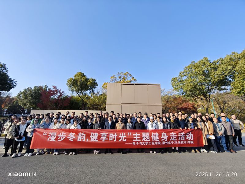 為迎接學院黨代會勝利召開,讓全體教職工在自然中放松身心、在運動中凝聚力量,11月26日下午,電子與光學工程學院、柔性電子(未來技術)學院工會精心策劃“漫步冬韻,健享時光”主題健身走活動,組織全院教師走進羊山公園,共赴一場冬日美景與健康活力的雙向之約。下午三點,參與活動的教師們齊聚公園入口廣場,臉上洋溢著期待與喜悅。學院黨委書記黃麗亞致辭,她表示,此次健身走活動既是響應“全民健身”號召、關愛教職工身心健康的暖心舉措,也是學院以團結奮進風貌迎接黨代會的生動實踐?!跋M蠹以诼街行蕾p冬景、在同行中增進情誼,把運動帶來的活力與激情,轉化為教書育人、干事創業的強大動力,共同為學院高質量發展蓄力賦能?!敝罗o結束后,教師們邁著矯健的步伐有序啟程,沿著蜿蜒的環湖步道展開了一場與冬日的親密邂逅?;顒咏Y束后,教師們在公園入口處集體合影。此次健身走活動全程約5公里,路程雖不算長,卻讓老師們在繁忙的工作之余,走出了校園、走進了自然,既鍛煉了身體、舒緩了壓力,更增進了彼此間的溝通與情誼。電子與光學工程學院、柔性電子(未來技術)學院工會未來將繼續聚焦教職工需求,秉持“服務教職工、凝聚向心力”的宗旨,組織更多形式
